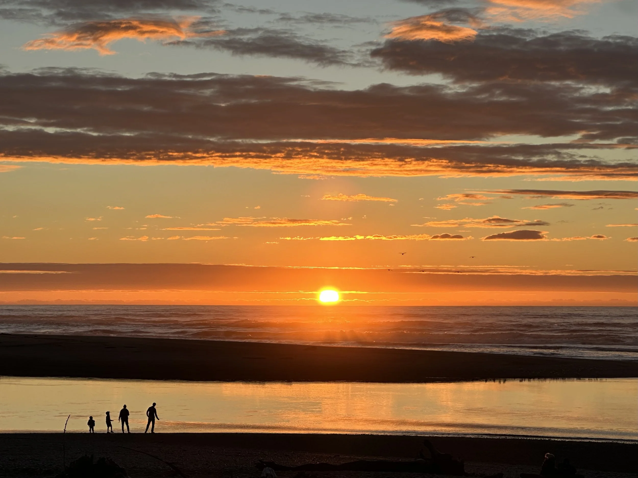 It’s just a few minutes from Hokitika town, but it feels like the edge of the world. A wild stretch of black sand beach where driftwood sculptures stand like sentinels, and every evening - without fail - the sky puts on a show that stops you mid-sentence. Gold melting into peach, streaks of violet and pink, the sun sinking slowly into the Tasman Sea like it’s in no hurry at all.